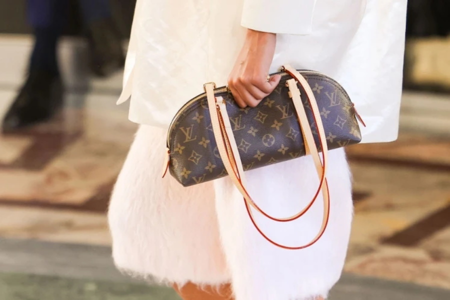 配饰方面,腰带式围巾可随意缠绕腰间,流苏装饰与Monogram口袋相得益彰。