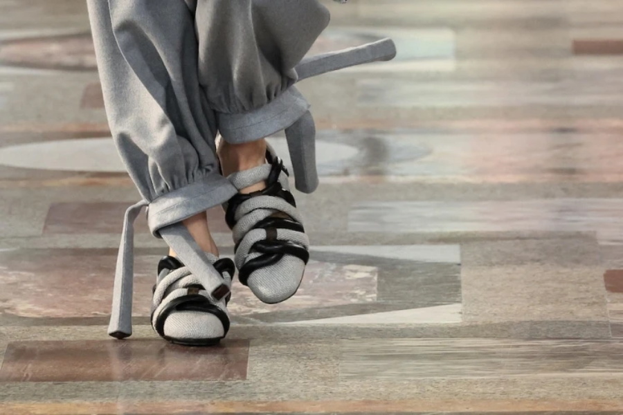 编织凉鞋则通过皮革与针织材质的交织展现创新理念。