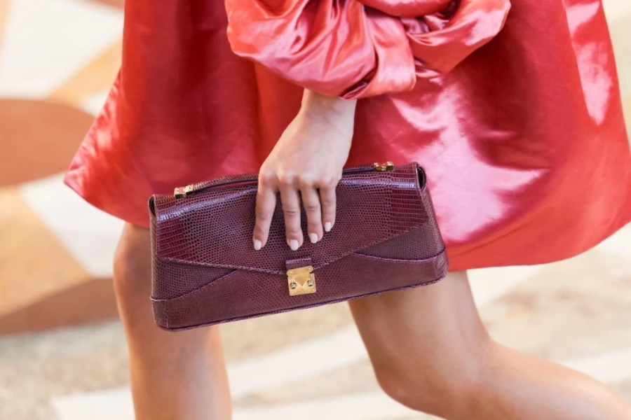 信封形手袋选用珍稀皮革,尽显知性优雅。
