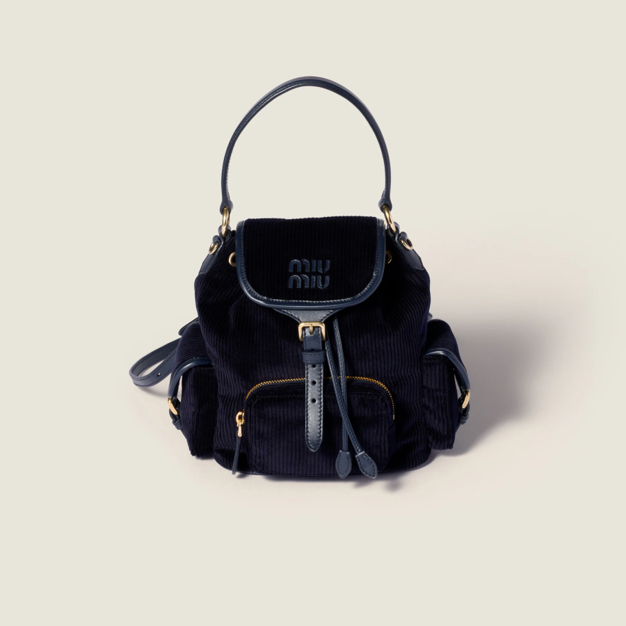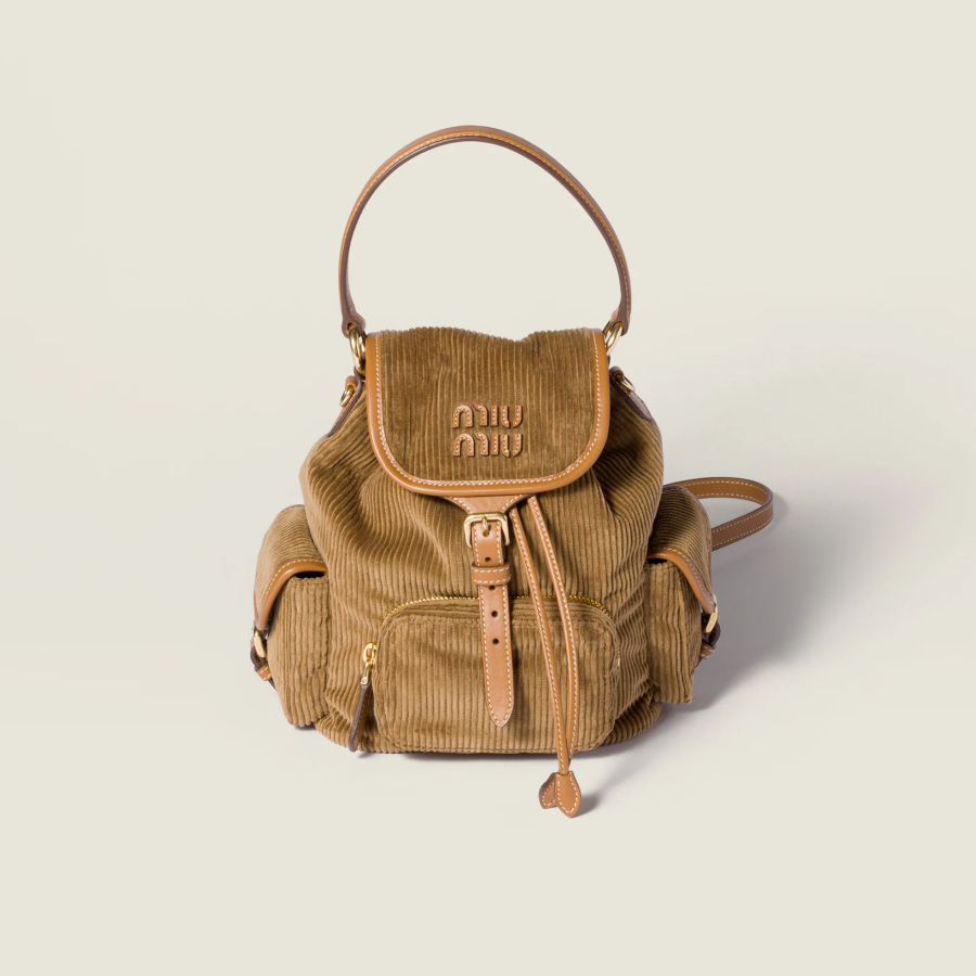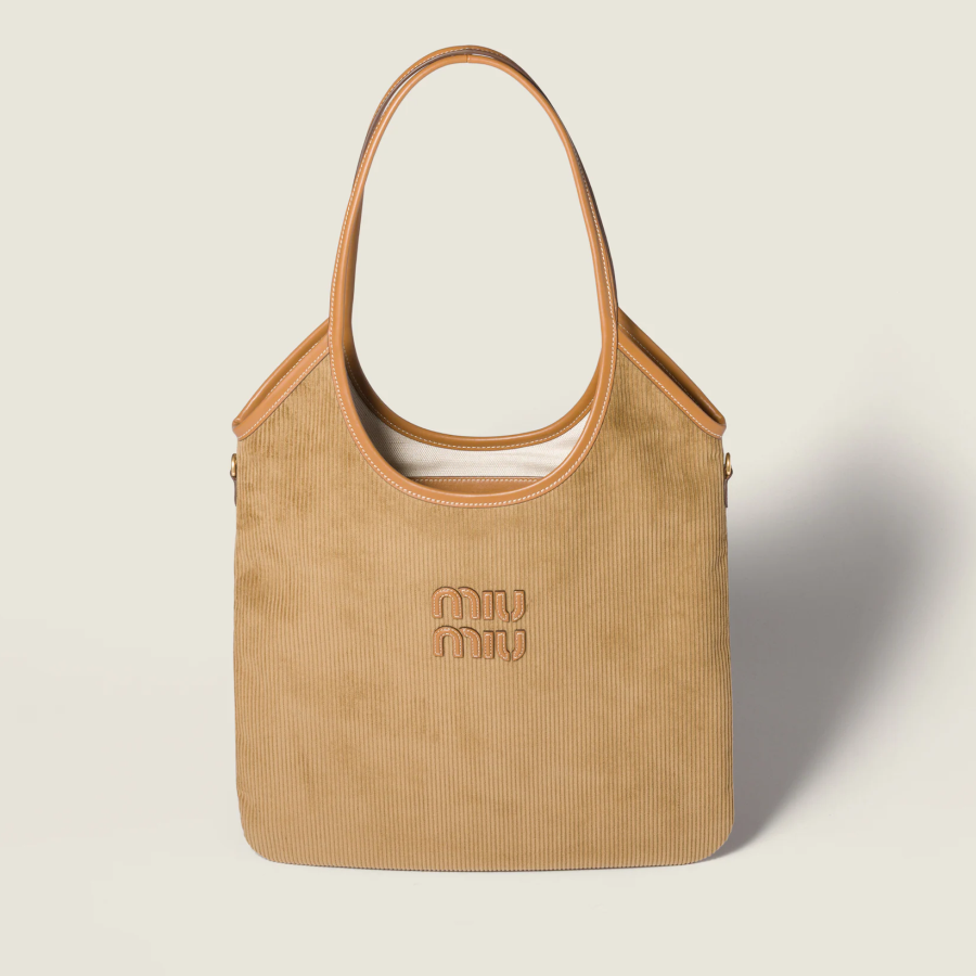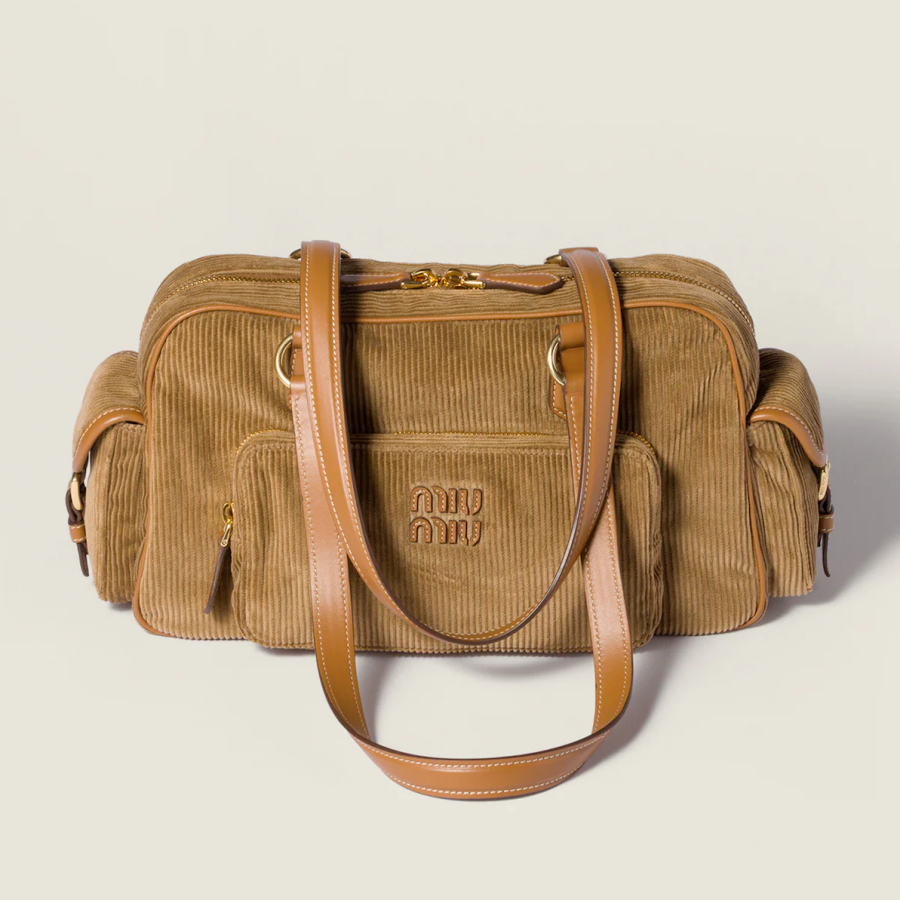 灯芯绒这一源自公元前2世纪古埃及的面料,本季被Miu Miu赋予全新生命。品牌以肉桂色、海军蓝等配色演绎多款手袋,流露出浓厚的复古学院气息。官价区间为1,500欧元至2,850欧元。
