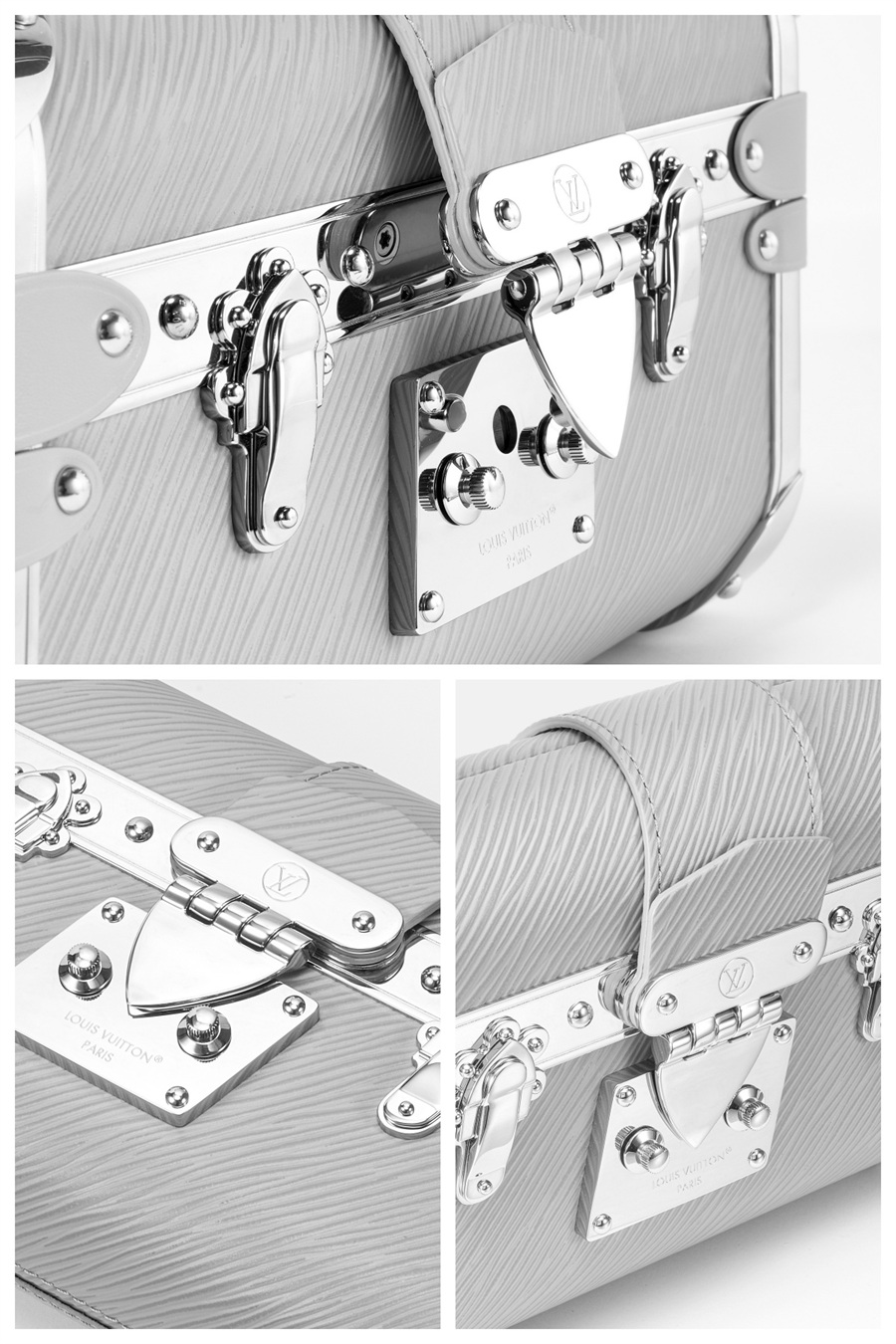 包包采用柔软细腻的羔羊皮内衬,点缀经典硬箱的 LV Malletage 菱格纹线条印花。