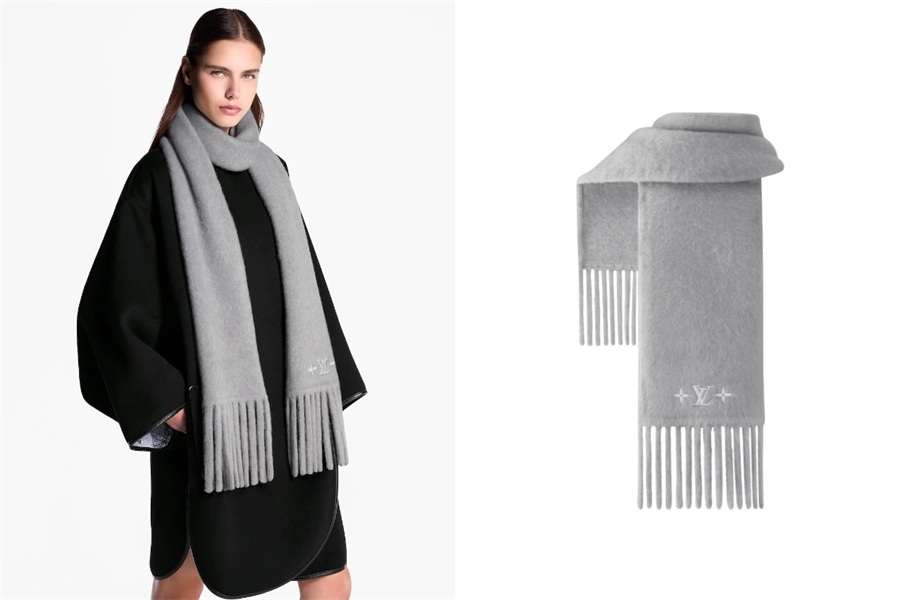 Louis Vuitton LV Fluffy Scarf (HK$5,500) 厚实蓬松的质感搭配标志性Monogram图案,既保持低调又彰显品味。无论是披在大衣外侧或随意缠绕颈间,都能瞬间提升整体造型的奢华指数。