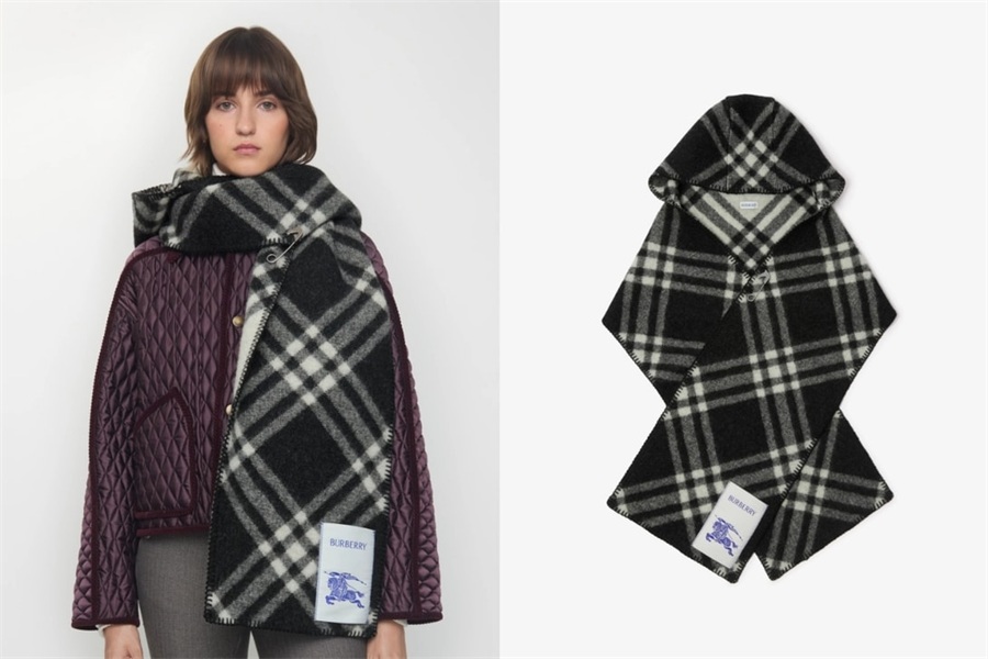 Burberry Check Wool Hooded Scarf (HK$8,250) 创新性地将披肩与连帽设计结合,经典格纹演绎出全新生命力。柔软羊毛材质提供极致保暖体验,是追求实用性与时尚感人士的理想选择。