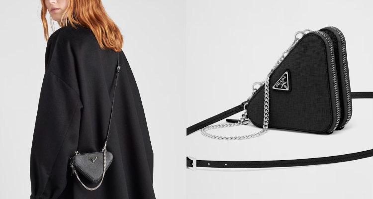 这款Prada迷你包,采用经典的双层Saffiano防刮皮革制作,轮廓设计灵感来自标志性的三角形Logo盾牌。包身搭配品牌标志性的珐琅金属三角徽章,增添质感与辨识度。既保留了品牌历史传承,也让小巧包款充满现代时尚感与收藏价值。(参考价格约 ¥12,190)