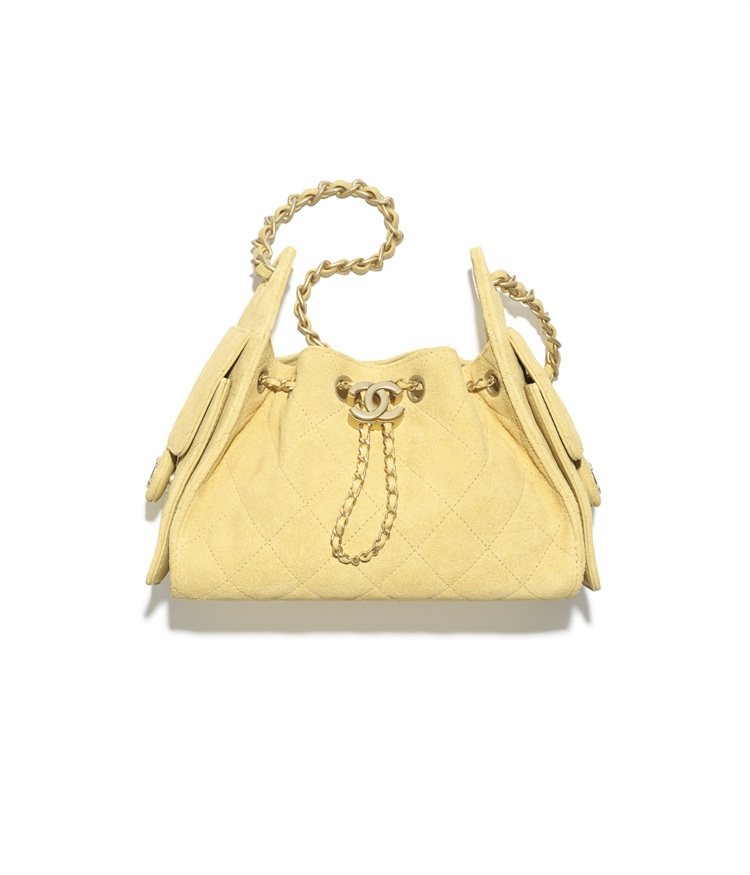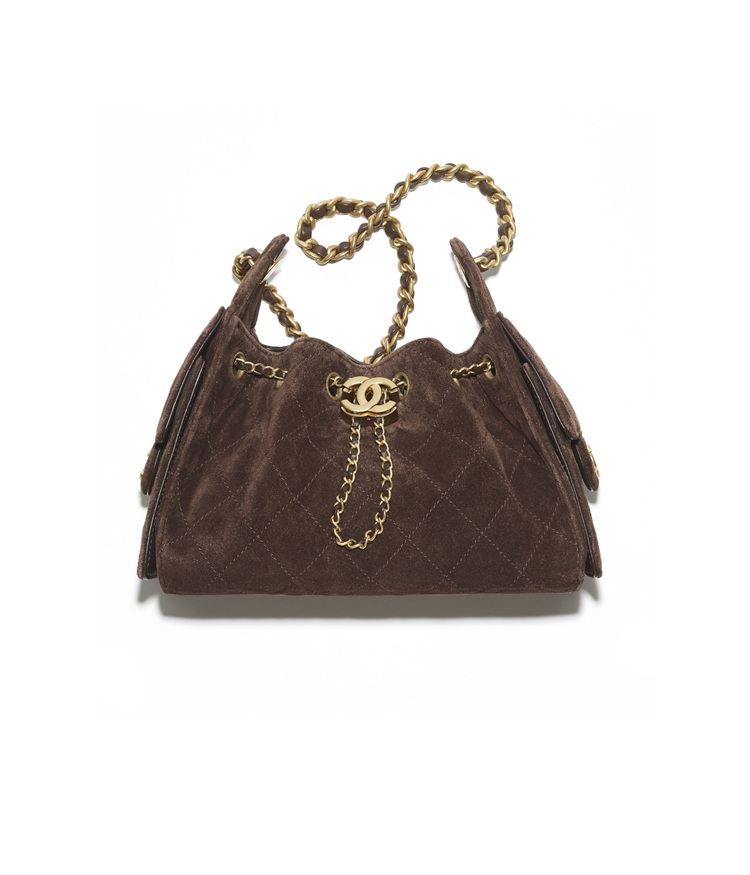 CHANEL 全新推出的CHANEL 25 迷你包款,以柔软皮革打造经典菱格线条,搭配上金属链条抽绳设计,为这款明星包款带来更精致小巧的选择,同时完美演绎了品牌的经典优雅,共有黑色、淡黄色、深棕色、玫瑰金、银色等多款配色。