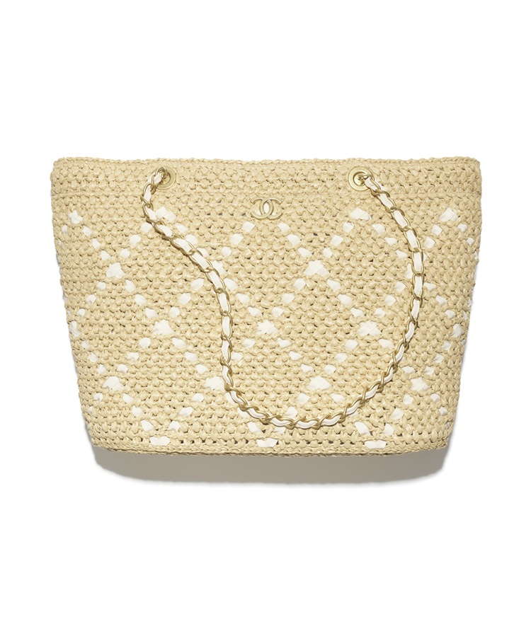 白色双C LOGO拉菲草编织购物包HKD 41,400