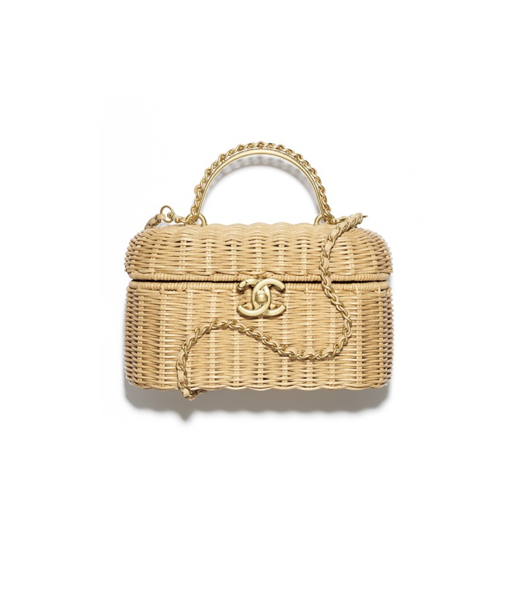 米色双C LOGO竹篮化妆箱造型肩背包HKD90,500