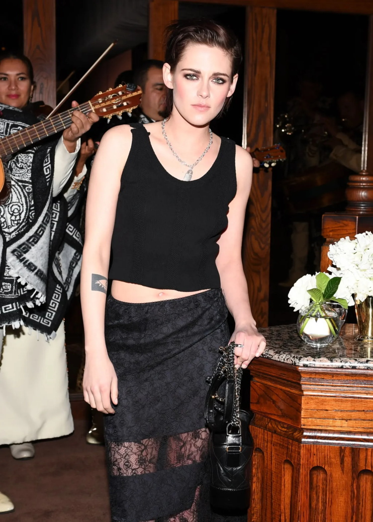 身为GABRIELLE 系列代言人,Kristen Stewart 背起全黑Hobo 包,