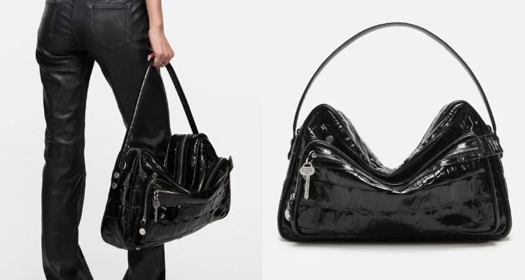 鳄鱼压纹让它看起来很“不好惹”。多口袋设计有点工装风的味道,扁平造型上身非常显瘦。如果你不想和别人撞包,选它。