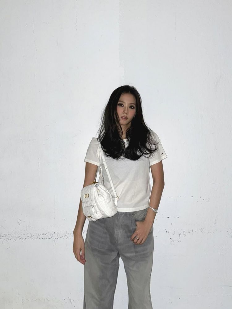 金色饰面提手与可调节肩带的组合,确保了轻盈舒适的背负体验。经由 Jisoo 私服演绎,即便是通勤或日常出行,也能流露不凡气质。