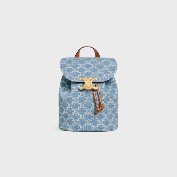 这款 Celine Triomphe 双肩包采用清爽的蓝色丹宁布满印老花设计,初见便给人以轻盈且高辨识度的印象。翻盖中央的金色 Triomphe 凯旋门标识是视觉焦点,搭配皮革抽绳与提手,包型小巧干练。它既保留了双肩包的实用基因,又平添了几分法式优雅与轻甜氛围。(参考价格:约人民币 20,025 元)