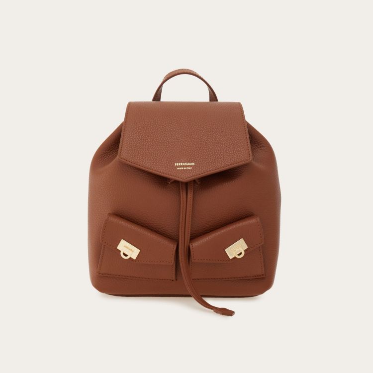 这款全新的迷你双肩包以其小巧的比例成功抢占视线。几何线条的翻盖搭配抽绳开合,内衬与按扣设计让日常收纳恰到好处。正面口袋线条简洁,点缀金色的 Hug 扣饰,这是一款让人忍不住想要天天背出门的精致单品。(价格详询专柜)