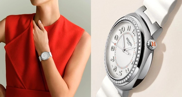 相较于传统珠宝表的柔美, Hermès 的 Cut 系列注入了强烈的几何与建筑感。其别具一格的字体设计灵动活泼,与表圈上细致的镶钻形成了“奢华”与“运动”的奇妙对立统一。白色表带与流线型表壳的组合,削弱了顶级腕表固有的距离感,呈现出一种毫不费力的法式时髦( Effortless Chic )。(参考价格:约人民币 105,200 元)