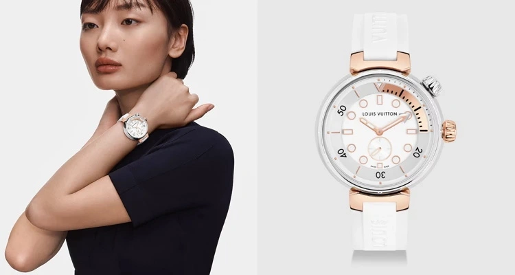 Louis Vuitton 的 Tambour Street Diver 巧妙地嫁接了潜水表的运动基因与奢侈品牌的奢华格调。18K玫瑰金表壳包裹着白色漆面表盘,夜光刻度与抛光指针确保了卓越的实用性。白色橡胶表带的加入,不仅提升了佩戴的舒适度,更为日常休闲造型增添了一抹前卫气息。(参考价格:约人民币 73,500 元)