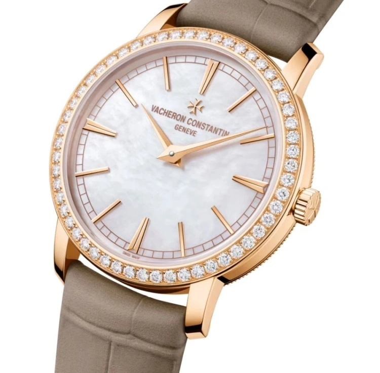 江诗丹顿从不以张扬取胜,Traditionnelle 系列则是这种“克制美学”的巅峰。33 毫米的尺寸恰好落在正装与日常的平衡点上,玫瑰金表壳与珍珠母贝面盘交织出极为典雅的光泽,不喧闹,也不冷淡。这枚腕表展现的是一种真正的“教养感”。