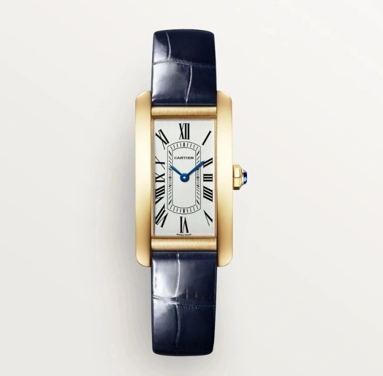 卡地亚 Tank 是老钱风世界里最稳妥的经典,而 Tank Américaine 在方形架构中注入了更修长、流动的优雅。黄金表壳搭配黑色皮带,褪去了珠宝堆叠的俗气,反而与白衬衫、针织衫、西装外套能自然共处。它带着明确的品牌辨识度,却始终没有半点急于证明自己的姿态。