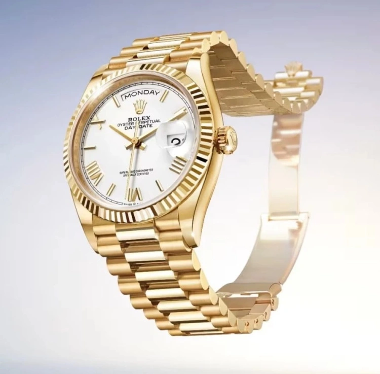 在劳力士的宇宙中,真正符合老钱风的往往不是热度极高的运动款,而是 Datejust。黄金搭配白盘,这是一种考验穿着者是否能将其驾驭得“自然”的贵气。它早已超越了流行,成为了很多人心中对“好表”的经典定义。