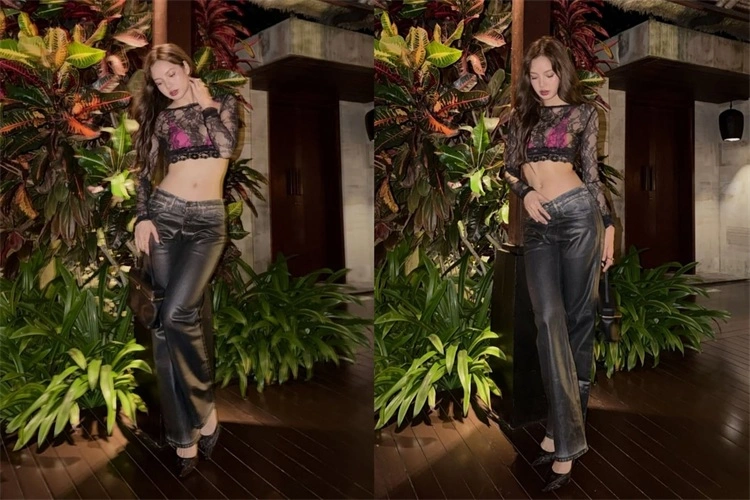 酷飒腋下风: 黑色蕾丝 Bra Top + 低腰阔腿牛仔裤 + 腋下背法。21 厘米的肩带长度简直是为“腋下包”量身定制的,那种不经意间的松弛感,瞬间展现出顶流的自信。