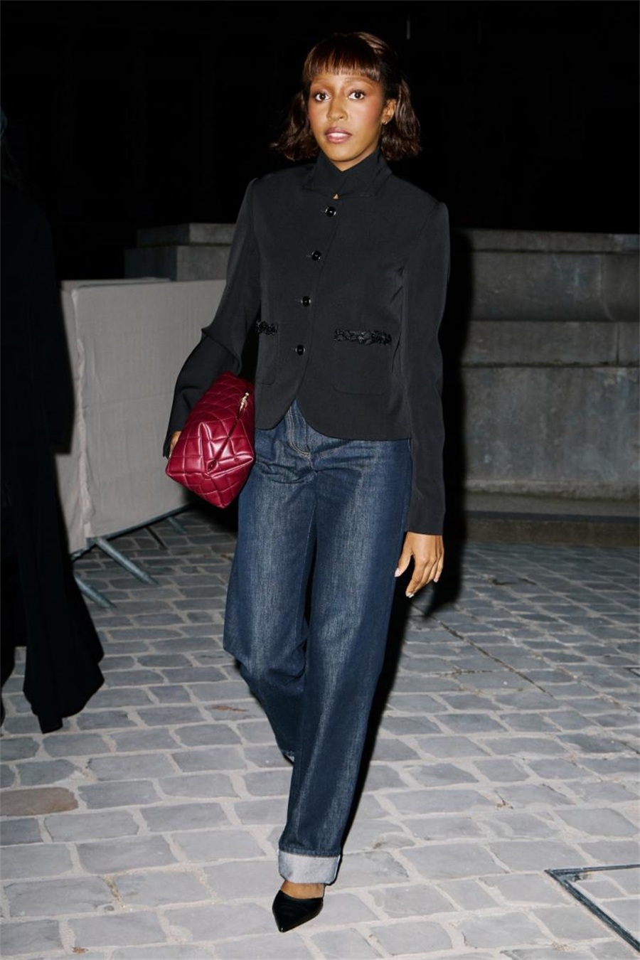《大熊餐厅》女星Ayo Edebiri以黑色羊毛外套亮相,选用大型手拿包作为造型亮点,方正结构让整体更具时尚气场。