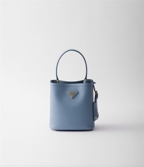 Prada 这款手袋以圆润的篮子作为设计,配上较长的手提柄,再加上一条长肩带,可以当作侧背包,加强了实用性。简约的设计让品牌的三角 logo 显得更高雅,彩蓝色的配色也增添了一种活泼甜美的气质。
