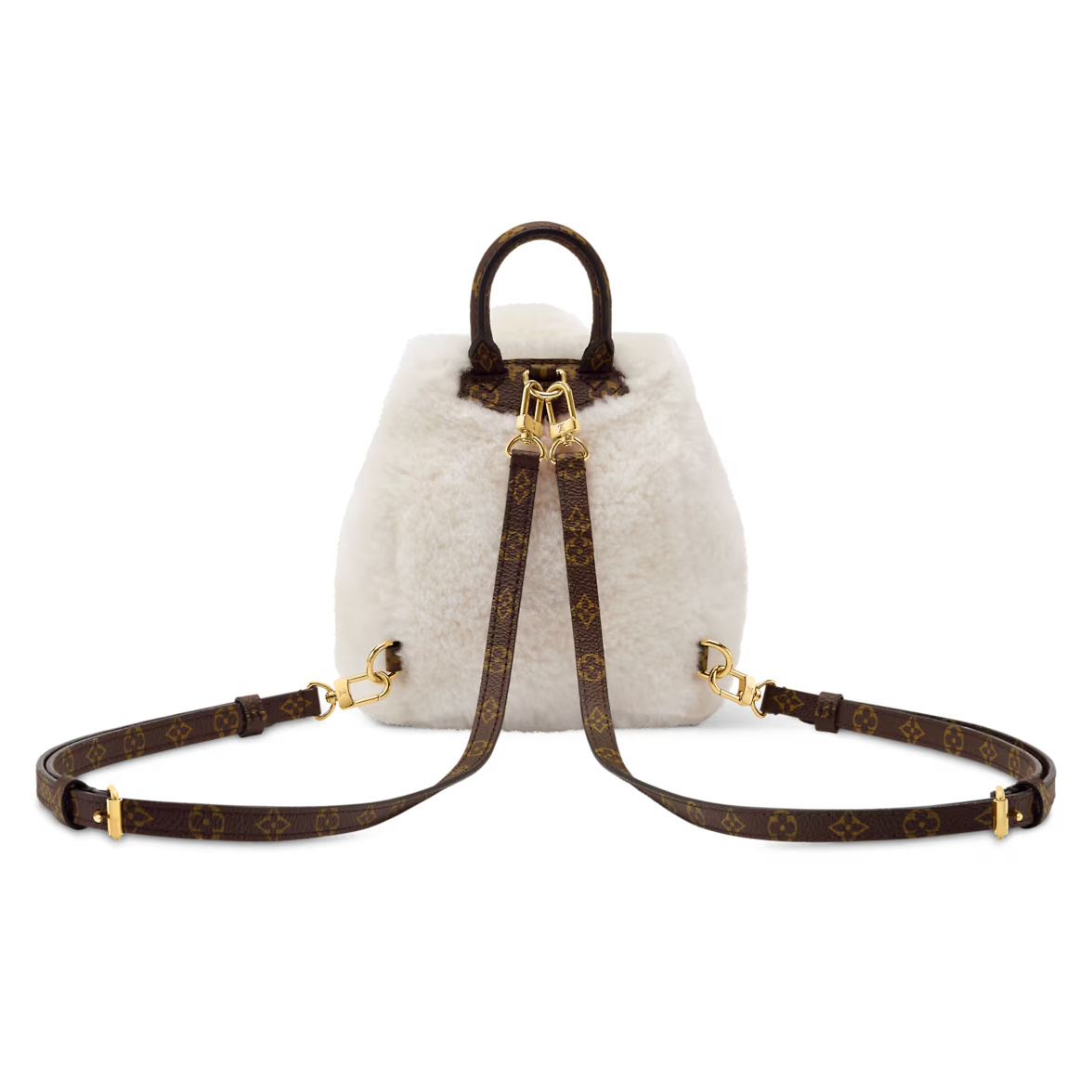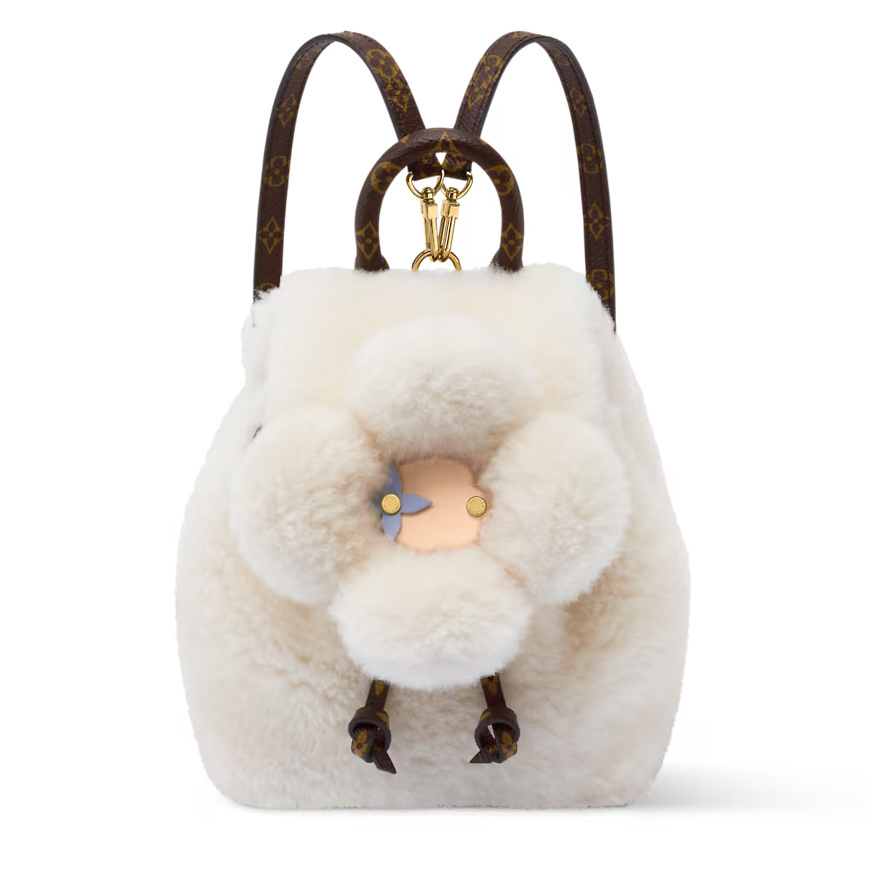 品牌吉祥物 Vivienne 化身 Viv-ified 双肩包的翻盖,蓬松又毛绒绒的羊毛皮令包包像是一只毛绒玩偶,雪白色调软糯可爱,让人很想拥入怀中~