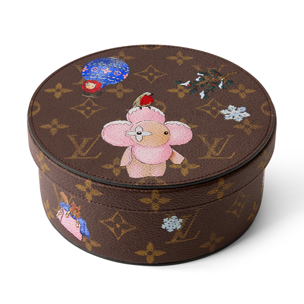 Eugenie 圆形中号收纳盒令当季插画跃现 Monogram 涂层帆布盒身,Vivienne 还邀请好伙伴小兔子、小松鼠一同做客,搭配一株圣诞树枝,洋溢浓浓的圣诞假日氛围。