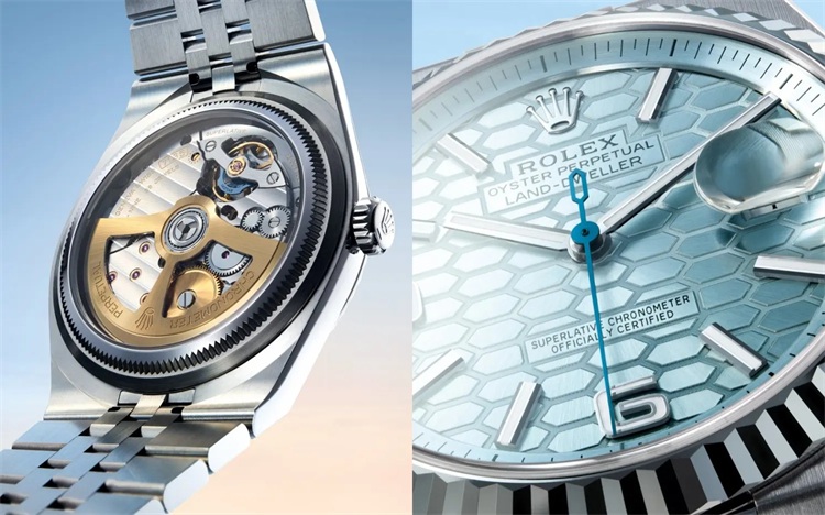 对于热爱机械奥秘的女性而言,Land-Dweller带来了一个罕见惊喜:蓝宝石水晶底盖。这是劳力士除少数复杂款外,极少采用的设计。透过这扇“视窗”,可以欣赏到全新研发的7135型自动上链机芯。其核心是革命性的动态脉冲擒纵系统(Dynapulse Escapement),能显著提升动力传输效率。这枚高精度机芯拥有长达66小时的动力储存,并荣获代表劳力士最高标准的“顶级天文台精密时计认证”,日均误差仅在正负两秒之内。