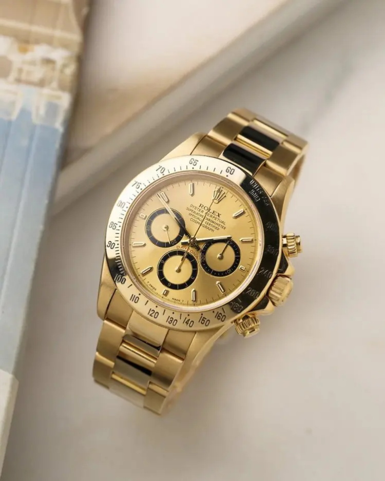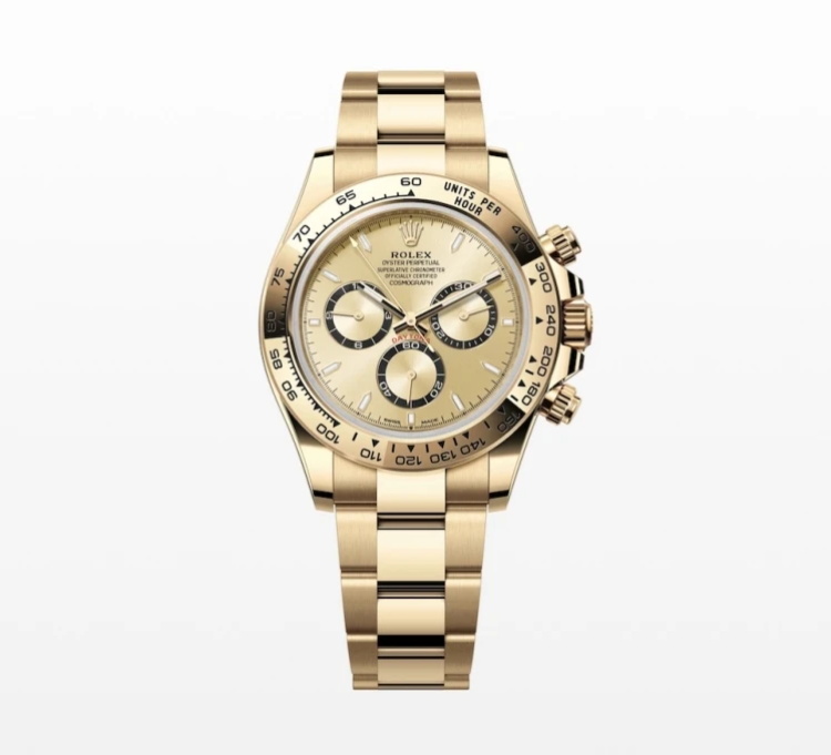 随着金价的攀升,贵金属材质的劳力士正展现出越来越强的资产属性。这款18K黄金 Daytona ,以金色表盘搭配18K黄金外圈,与黑色计时盘形成强烈的视觉反差,尽显奢华大气的王者风范。