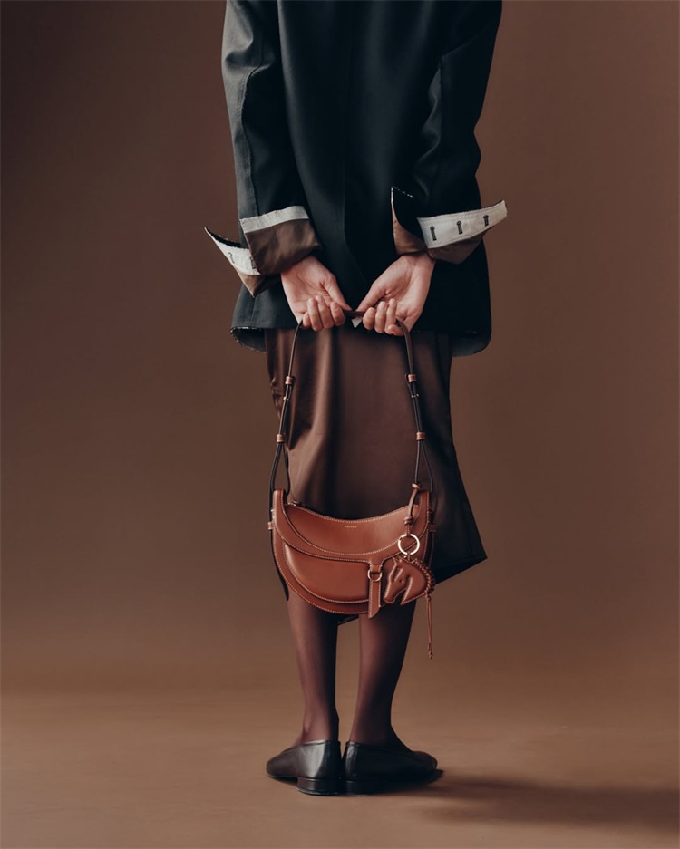 设计上,可调节的肩带承袭了马具装备的实用美学,细节处利落的垂直立体结构与精致缝线,则彰显了品牌对比例与工艺的严苛要求。尤为亮眼的是随包附赠的马形吊饰,其鬃毛部分采用手工编织而成,为整体造型注入了一抹灵动的气息,在理性的结构中保留了恰如其分的柔软与精致。