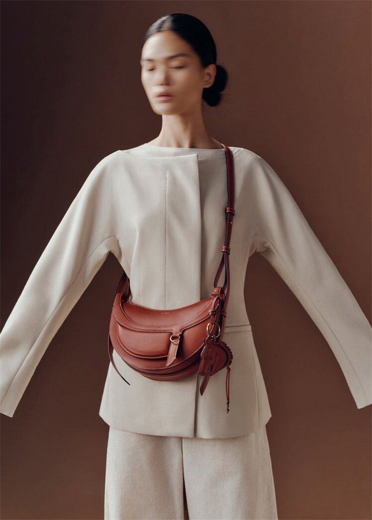 提及“马”元素,Chloé 的 Chain Horse 无疑是切题之作。半月形的包身轮廓搭配皮革与金属交织的肩带,最吸睛之处在于肩带连接处的金色骏马雕饰——精致的马头与马尾首尾呼应,为整体设计注入了浓郁的贵气与艺术雕塑感。