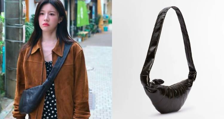 A: 剧中车茂熙(高允贞饰)在日本旅行时背的“牛角包”,是法国设计师品牌 Lemaire 的经典“Croissant”可颂包。灵感源自法式可颂面包,圆润的剪裁配合柔软皮革,能随内容物自然垂坠。其极简且高辨识度的设计,加上贴合身形的背负体验,使其成为展现随性时髦感的最佳单品。