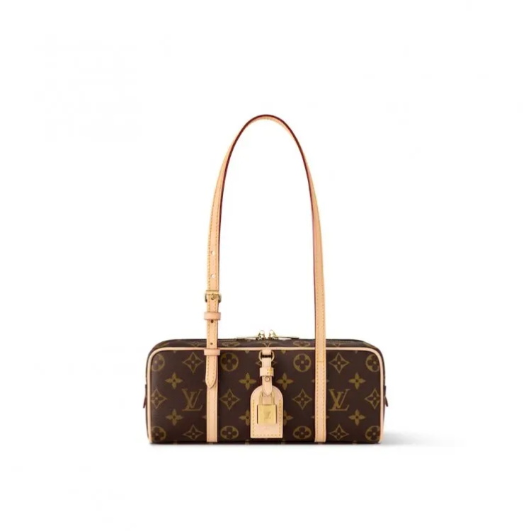 Hang On 是 Louis Vuitton 对“长手柄趋势”交出的答卷。这款手袋重新演绎了品牌 80 年代的经典 Cité 包款,使其更具保龄球包的复古韵味。包身中央点缀着标志性的行李吊牌,搭配浅色牛皮长肩带,完美平衡了复古情怀与清新格调。这也解释了为何它的等待名单(waiting list)总是居高不下。