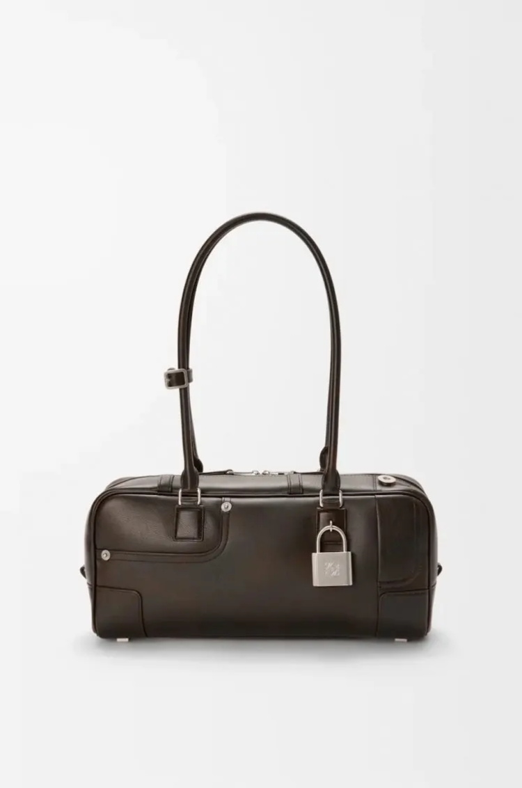 Amazona 向来是 Loewe 的镇店之宝,其结构感十足的长方形轮廓,大方简洁,极易搭配。新款保留了 Amazona 的经典外形,但换上了长手柄,大大提升了佩戴的灵活性与舒适度。标志性的挂锁点缀,更赋予了手袋独特的辨识度。