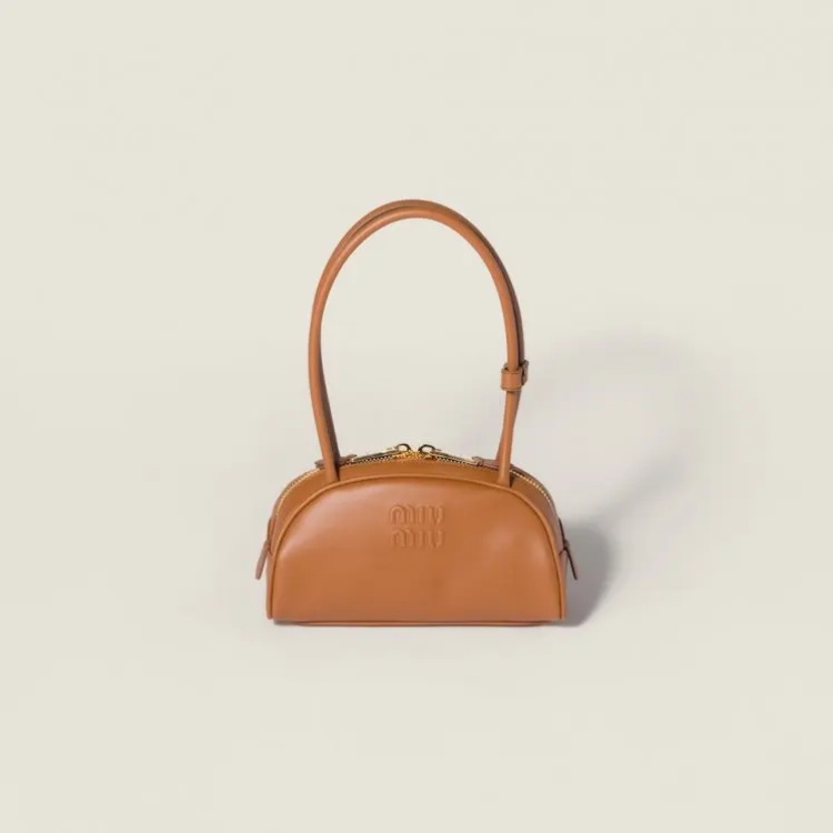 Beau 系列一直是长手柄手袋的代名词。这一次,Miu Miu 将方正的包身替换为更加圆润的轮廓,既致敬了 2000 年代保龄球包的经典影子,又不失现代摩登的演绎。焦糖色的外观进一步提升了手袋的百搭属性,并有多种尺寸可供选择。