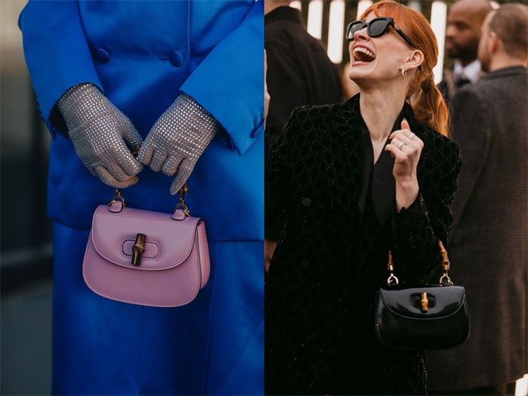 尽管 Gucci 拥有众多标志性的品牌符号——从互扣式双 G Logo 到马衔扣元素——但其最具传奇色彩的象征之一却是完全无 Logo 的设计: Gucci Bamboo 。在手袋发展史上,很少有设计元素能像竹节包那弯曲的手柄一样,既让人一眼即识,又充满了开创性的巧思。