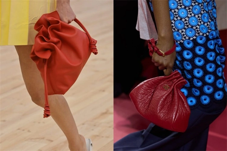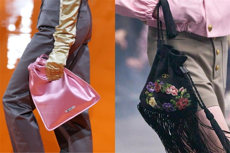 在小包领域,自带晚装优雅气息的抽绳束口包正悄然成为焦点。从 Loewe 与 Miu Miu 用精致皮革打造的细腻轮廓,到 Prada 的缎面锦囊以及 Valentino 的流苏设计,这类包款无论是随性手拿还是自然挽于肘间,都能让你慵懒而优雅地出席亲友聚会,为整体造型注入恰到好处的浪漫与轻盈。
