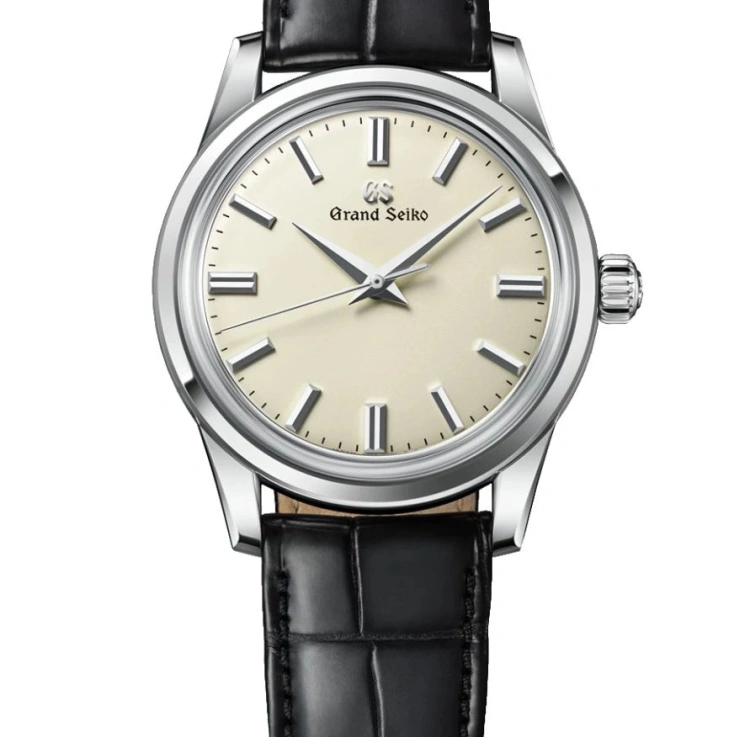 Grand Seiko 以精准、细腻的做工彰显日本专业制表的强大实力。旗下的 Elegance 系列以经典隽永著称,圆润表壳纤薄,表耳微微下弯,整体线条干净精准。面盘多采用素雅色调,搭配细长时标、柳叶形指针与抛光秒针,极致展现日系审美对比例的严苛要求。无论米白、银灰或淡色面盘,都能在不同角度折射出温和光泽。配上皮带后,整枚腕表斯文儒雅,与海军蓝西装、卡其风衣、米白针织衫堪称绝配。