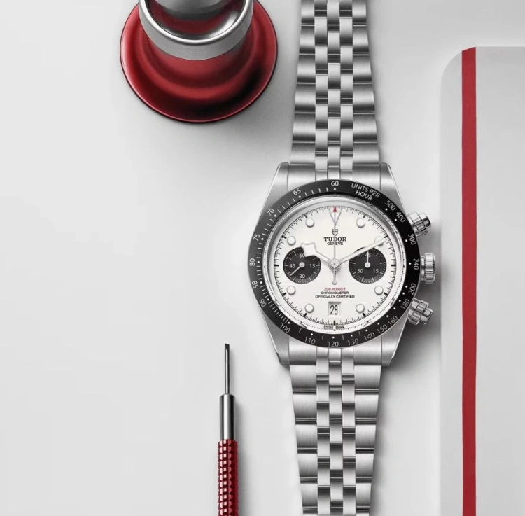 凭借劳力士的“亲兄弟”身份,帝舵的这款计时表在性价比上几乎无敌。它拥有一种粗犷的复古运动感,经典的雪花针搭配黑白熊猫配色,不仅外观硬朗,且机芯稳定性极佳,是许多年轻人入手顶级计时表的首选。