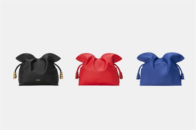 而 2026 年的新款,在保留了这种极致柔软的前提下,LOEWE 为抽绳末端加入了全新的“金属线圈”设计。这并不是简单的装饰,而是通过金属的重量感,赋予了原本松垮的线条一种向下的坠力。这一改动,让 Flamenco 从一件“慵懒配件”直接升级为一件“随身雕塑”。